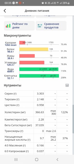 | Итого за день | 4500 | 1262 | 98 | 38 | 129 |