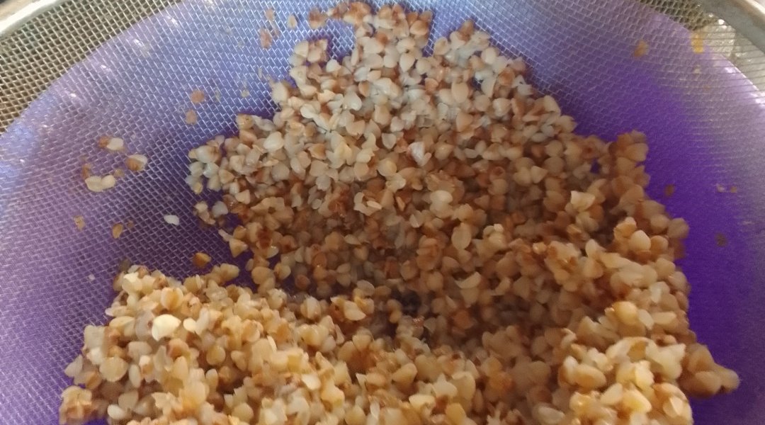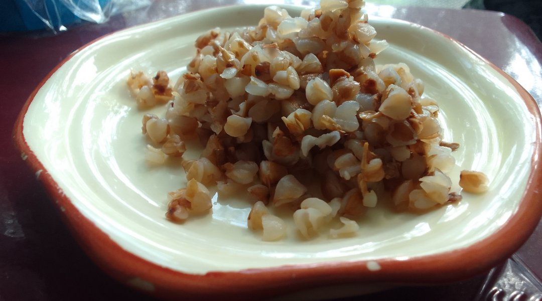 Гречку заваривают на ночь, из расчёта, 80 гр. крупы на 300 грамм