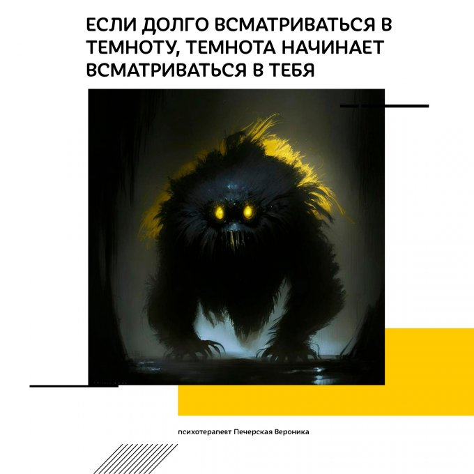 Эта история для меня послужила вдохновением. Мне захотелось дать ей свою, отдельную жизнь. А заодно показать, к каким разрушениям могут привести деструктивные родительские директивы. Реальная история превратилась в нейросказку с терапевтическими элементами трансформации и проработки предписаний. И очень надеюсь, что очень скоро эта сказка поможет и другим взрослым, которые боятся смотреть в темноту..