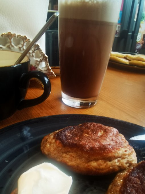1. на завтрак у меня вкусненькие сырники с псиллиумом и сметанкой + какао со сливками и маслом (это сочетание мне понравилось больше, чем с кофе)