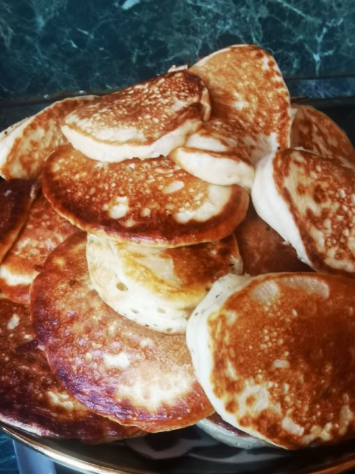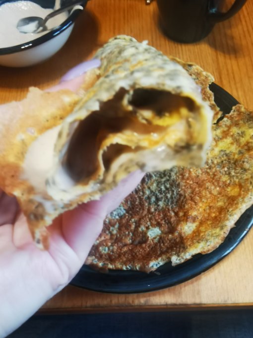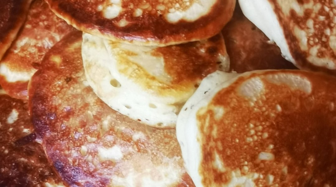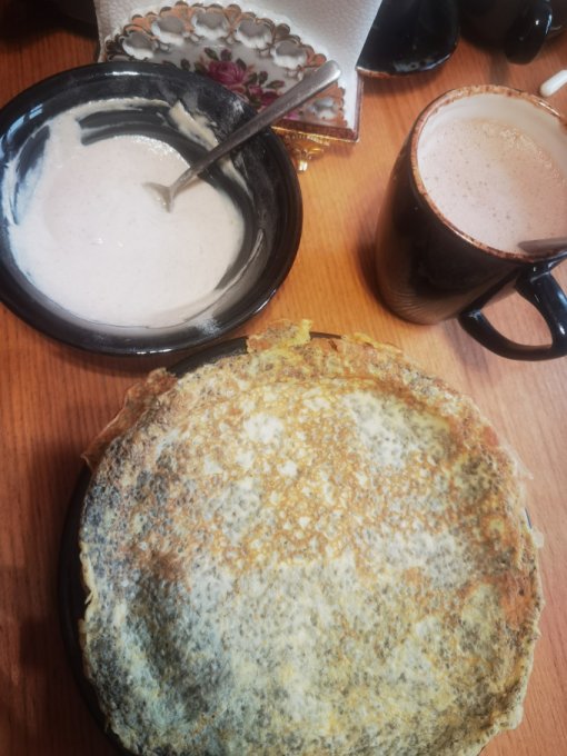 Моим на завтрак сделала пышные оладушки с малиновым вареньем и вареньем из зелёных грецких орехов. А для себя: блинчики со сметано-протеиновой намазкой. Очень вкусно и сытно!