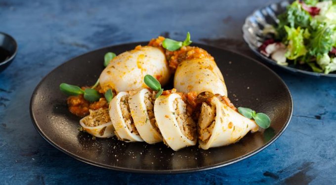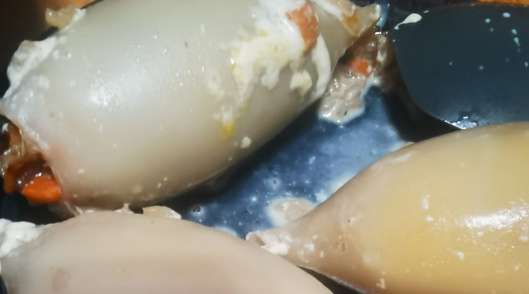 | Фаршированные кальмары (рис и шампиньоны) в сливках |