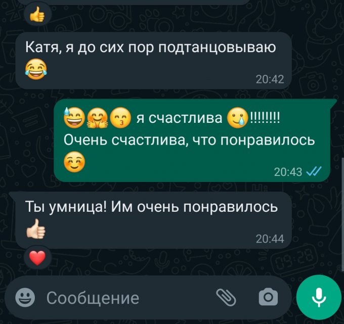 Тут мне написала (отправила голосовыми) девочка-лидер моего состава