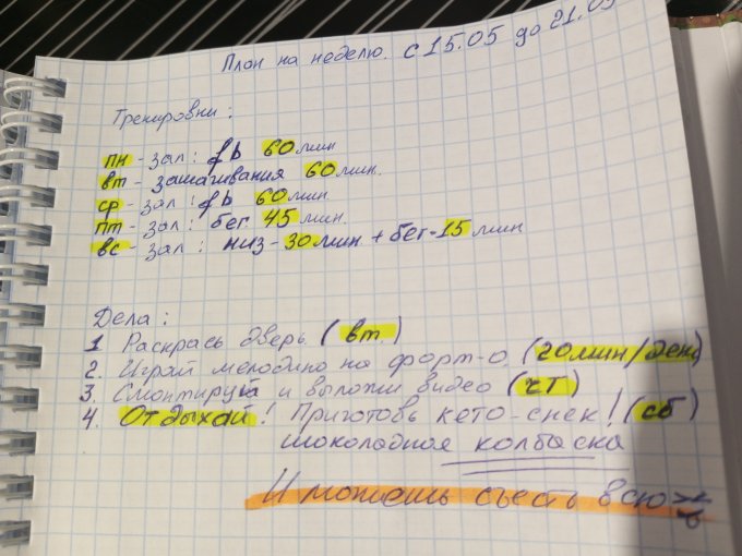 Света https://health-diet.ru/people/user/680435/blog/338370/ , спасибо за совет!!!! План составлен😎, на неделю договорились подарить мне "тишину " в голове. Ну и за последний пункт проголосовали все(трое🙋‍♀️+🏋‍♀️+👩‍🎤) , ибо это (чисто теоретически) должно меня избавить от желания компенсации и плохого отношения к себе, т. к. это плановый чит (раньше я не помню чтобы планировала такое, были только эмоциональные срывы)