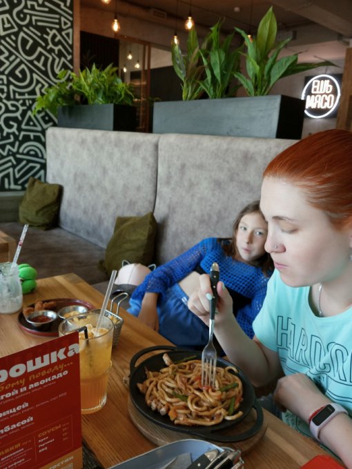 муж суп какой-то, ну и доча нормально поела, ну и сестра мужа,