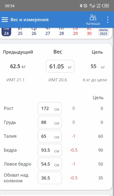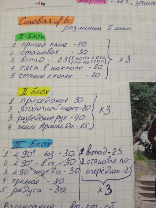А ну и отчет веса, замеров раз/нед. Фотоотчет раз в три нед