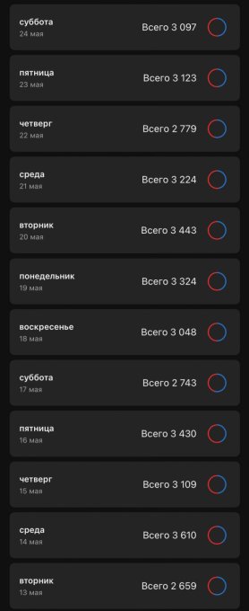 | Итого за день | 1809 | 2187 | 76 | 53 | 333 |