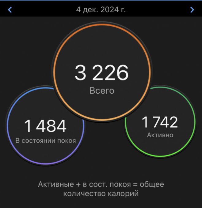 | Итого за день | 2605 | 3757 | 227 | 43 | 612 |