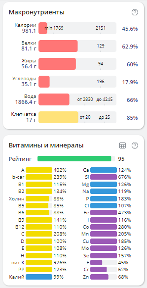 Кто на НУП - идеально, кто кушает углеводики - добивайте до нормы