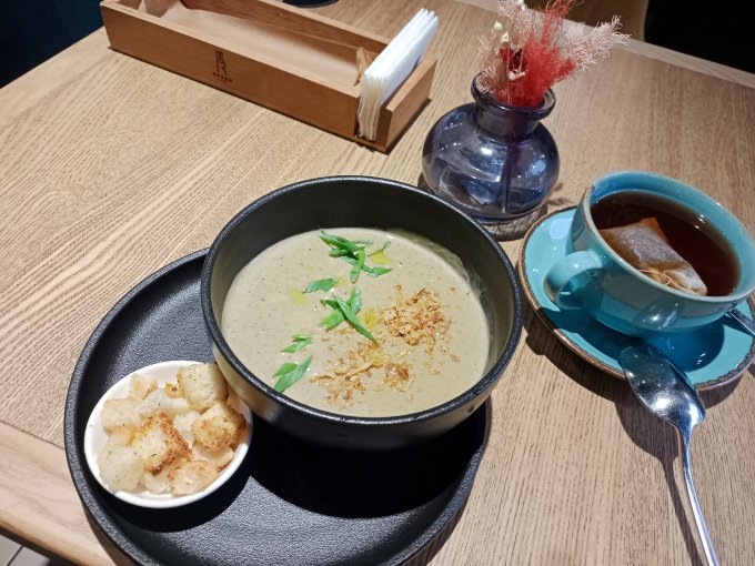 Пока шла сегодня домой с работы шел дождь, захотелось есть, а мне сегодня ещё за роликами на ВБ😁..завернула в Роджер кофе и съела офигенный грибной суп с гренками. Изменила в связи с этом сегодняшний рацион. Поглощу вечерком лаваш с творогом, ну мож ещё салатик помидорный и достаточно.