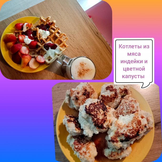Сегодня на обед котлеты из белого мяса индейки. Вчера купила готовые Пава-Пава, добавила в них замороженную цветную капусту, пожарила и в духовку. Вкусно и более нутритивно полезно😆