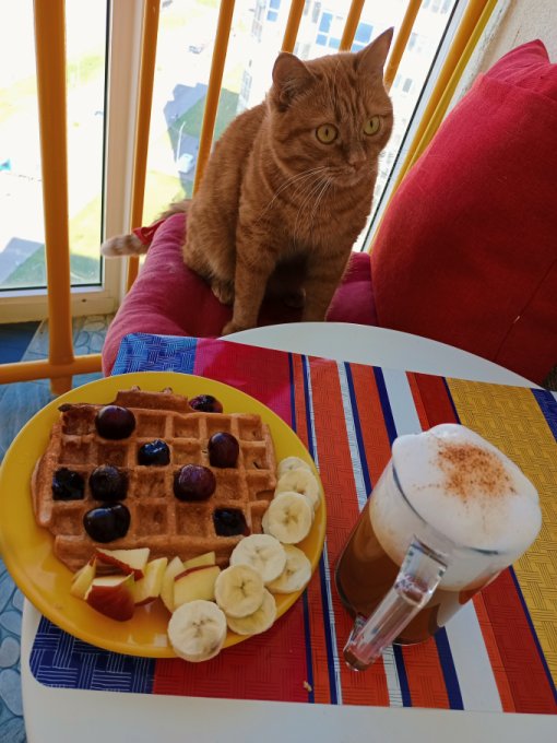 Сегодня все с утра идеальное кроме погоды - творожные вафли, пенка на капучино, хотя что это я, тепло ведь, +22 и может даже хорошо,что нет жары.