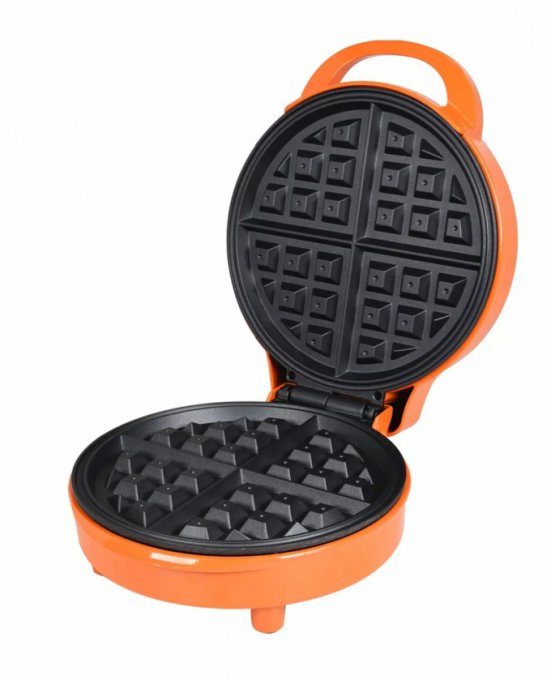 Получила минивафельницу с керамическими покрытием. Она прикольная, но печет ооочень долго, минут 5 вафля маленькая, хотя указано 1000 вт. Но вафли получаются прям как надо. Красивые. Покрытие отличное. Такую бы, но побольше диаметром. Подарила подруге, напекла там вафель шоколадных. Это вариант для пробы, для редких выпеканий и хорошо для овощных и творожных,когда нужно отличное покрытие. Темный цвет - это вкрапление шоколада.