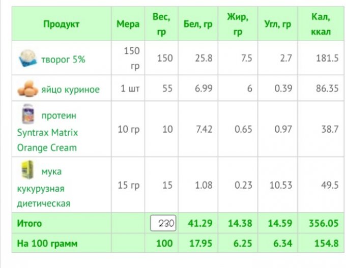 | Кол-во | Калории | Белки | Жиры | Углеводы | |