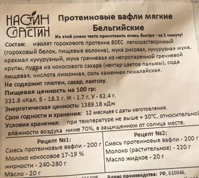 Вместо привычного протеина в этот раз я заказала смесь для вафель с