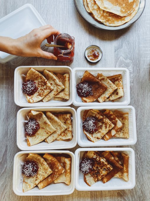 Были сегодня и блинчики с клубничным джемом, которые мы всей семьей отвезли монахам в храм. И, как обычно, принимающий подношения монах, взял себе коробочку.