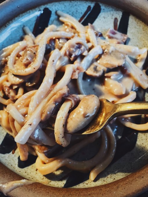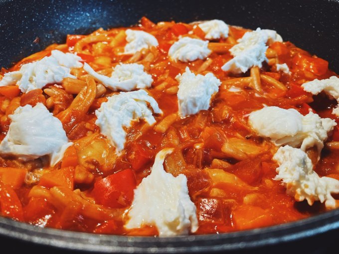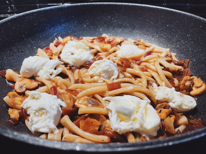 Есть не хочется совсем, так что на ужин я приготовила домашнюю пасту с грибами и моцареллой.