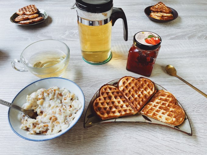 На полдник съела творог, а к ужину набралась сил и сварила себе куриный бульон. Такой получился вкусный! Вот после него мне сразу стало лучше. Потом пожарила вафли из заготовленного вчера вечером теста. Они пробудили во мне спящий до этого аппетит, и я навернула 5 вафель. Скорее всего тоже не надо было так делать, а разделить, и есть небольшими порциями. Но… захотелось, и я съела.