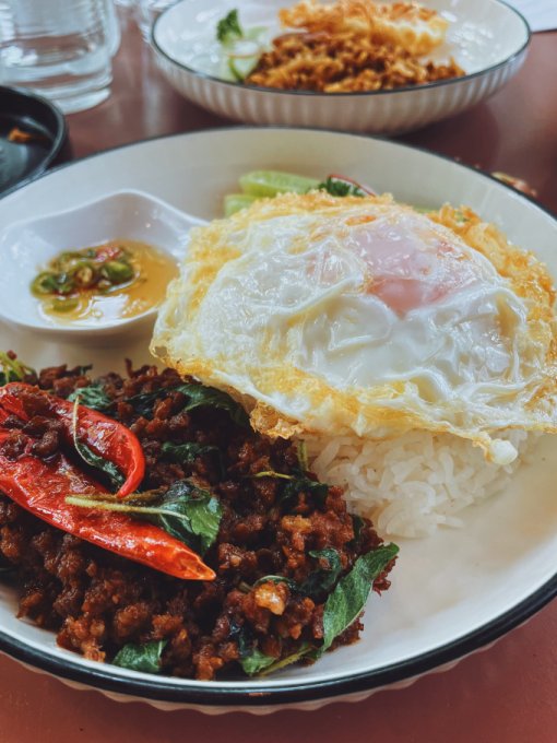 Из нового в рационе - попробовала сегодня в Бэлле Капрао ныа (рис с жареной говядиной и базиликом). Попросила положить один перчик чили вместо четырёх. Было ну очень вкусно! Вот умеют они в Бэлле готовить, как дома. Люблю такие заведения.