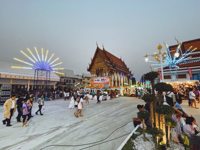 После свершения хороших дел все идут веселиться на ярмарку, которую разворачивают на территории храма. Там все, как обычно, вкусно пахнущая еда, музыка и простые развлечения вроде тира или вылавливания шариков из воды.