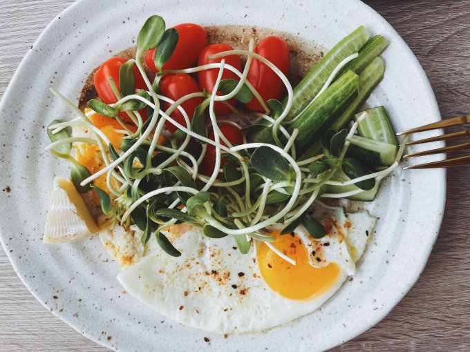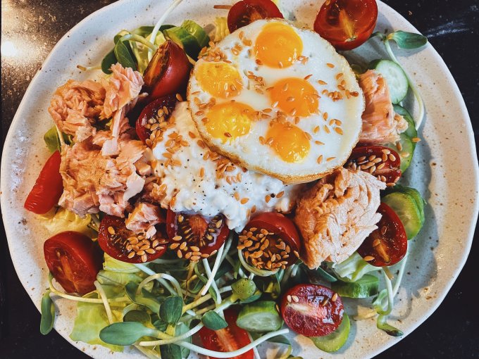 На ужин делаю сложно-составные салаты, много добавляю суперфуда, чтобы набрать нутриенты. Без этого пока никак не получается вывести насыщенный рацион.