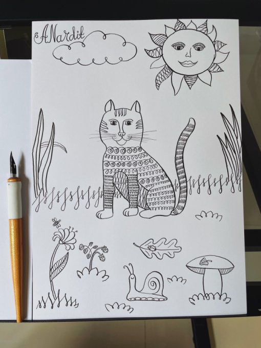 Увлек меня не на шутку этот процесс, такой размеренный и гармоничный. Всё внимание концентрируется на линиях и завитках, так что больше думать во время рисования ни о чем не приходится. Могу так незаметно провести пару часов подряд.
