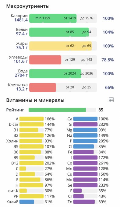| Итого за день | 3070 | 1481 | 97 | 75 | 101 |