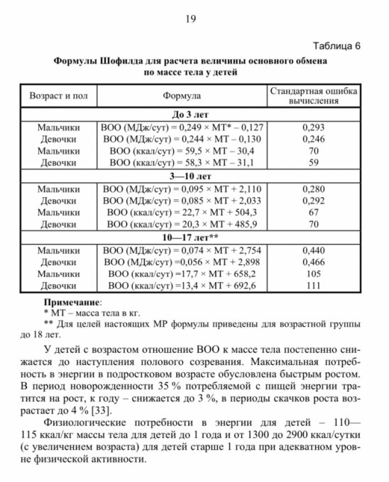 Усредненная потребность в пищевых веществах для обучающихся возрастных групп