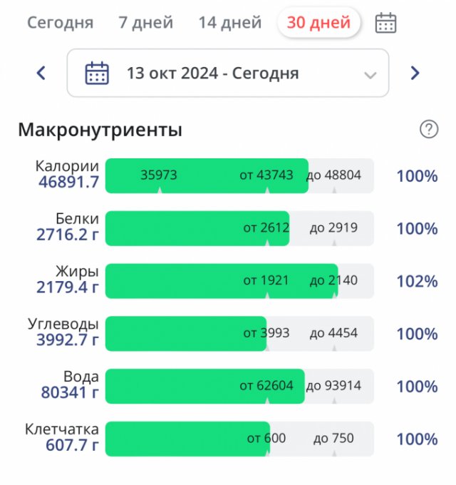 Из не совсем стандартного я ещё заполнила нормы незаменимых аминокислот в настройках. Проследила за ними, с моим количеством белка в питании (90-100 г в день), все набираю двукратно.