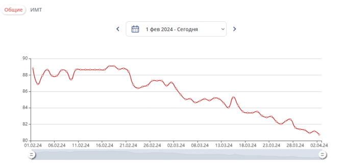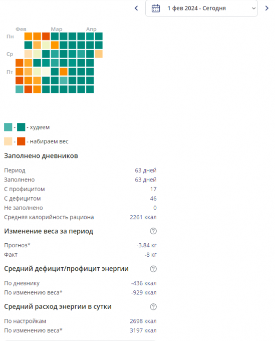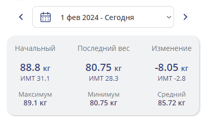Изменение веса за период: -8кг