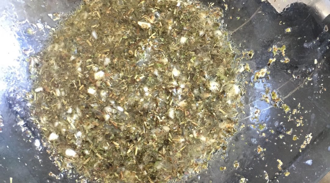 пропущенный через пресс или мелко-мелко нашинкованный, специи,