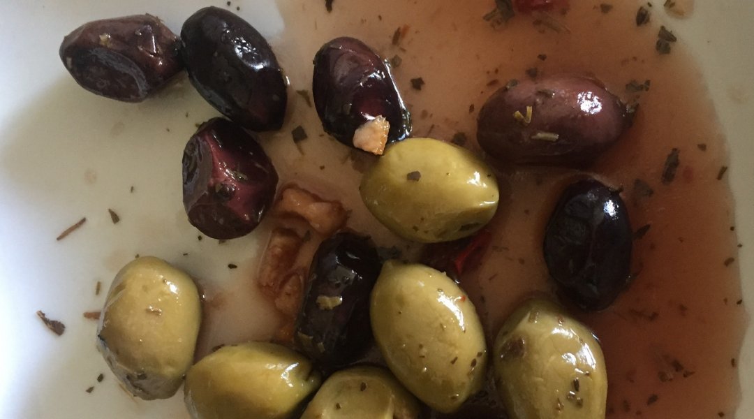 Оливки и маслины отделить от костей и нашинковать. Смешать в