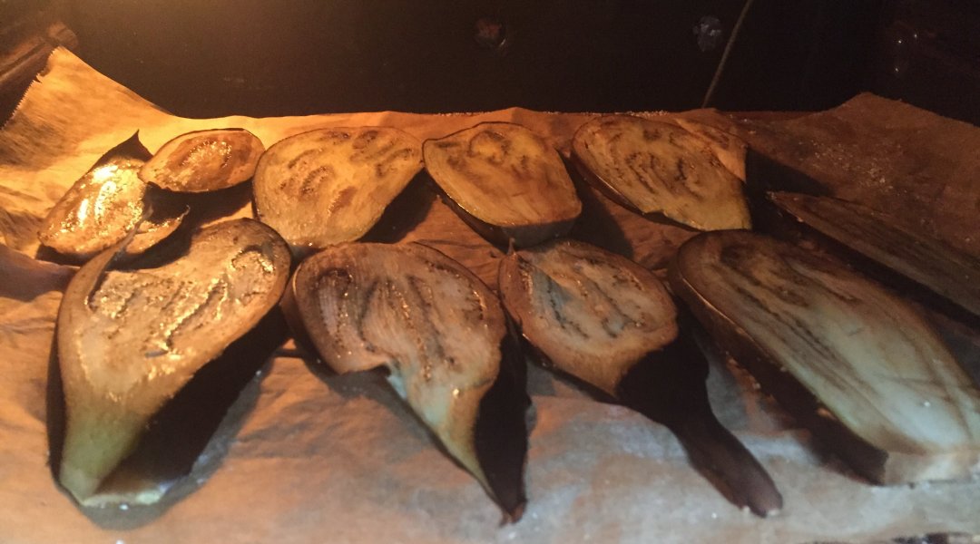 Горячие баклажаны 🍆 ввернуть в фольгу и сверху положить махровое полотенце. Чтобы они тёплыми оставались.