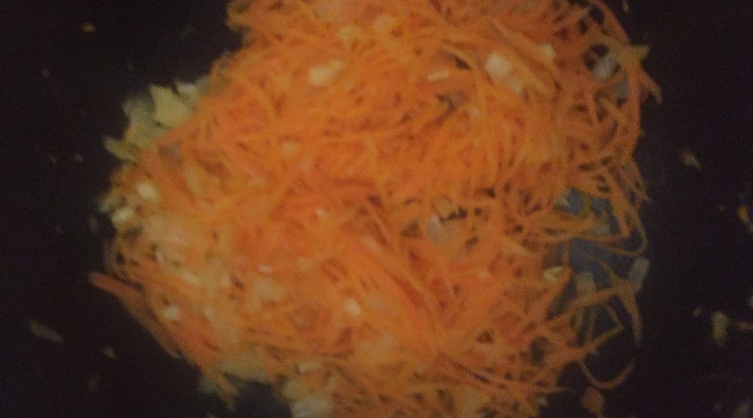 Нарезать перо зеленого лука. Добавить в овощам. Выключить мультиварку. Сюда же добавить все специи, кориандр растолочь в ступке с чёрным перцем и свежий тертый имбирь. Размешать. Оставить на режиме подогрева до фарширования.