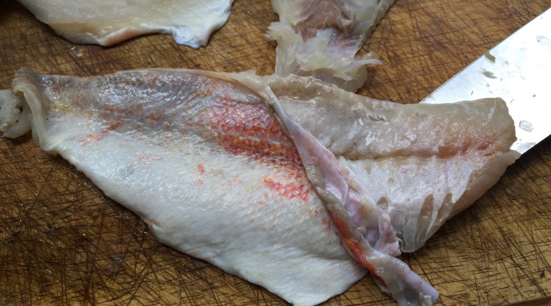 Добрый ночи всем! Нашла вкусное «лекарство» от бессонницы - вишню. Своя замороженная лежала, лежала, вот и пришло её время. Вкусно! Замочила семена чиа на её размороженном соке-льде, но пока не съела. После сегодняшней чистки морского окуня хотелось бы ответить тем, «кто любит готовить». Прежде чем об этом заявлять, вам надо снять кожу с филе. Занятие не для слабонервных. Но сам кулинарный шедевр из него стоит усилий. Таяющий во рту хрустящий рулетик с морской ноткой. К нему и гарнир не нужен. Просто листовой салатик из всего зеленого, что есть в доме.