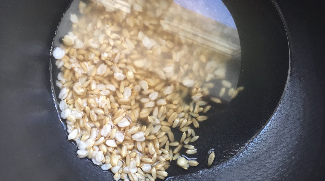 Утром слить воду с овса. Промыть его под проточной воде. Положить в чашу мультиварки. Залить водой. Включить на режим «Молочная каша» в общей сложности на 30 минут. У меня это три цикла. Готовая каша выглядит распаренной, вода полностью покрывает овёс.