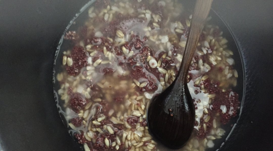 Добавить к овсу мочку из семян чиа. Размешать. Проварить ещё все минут 5 на режиме «Пароварка».