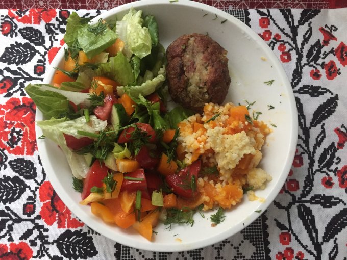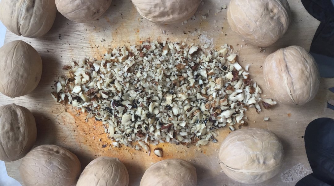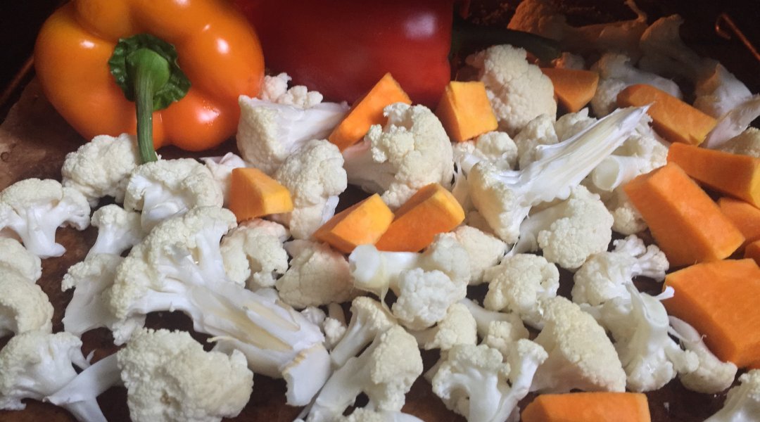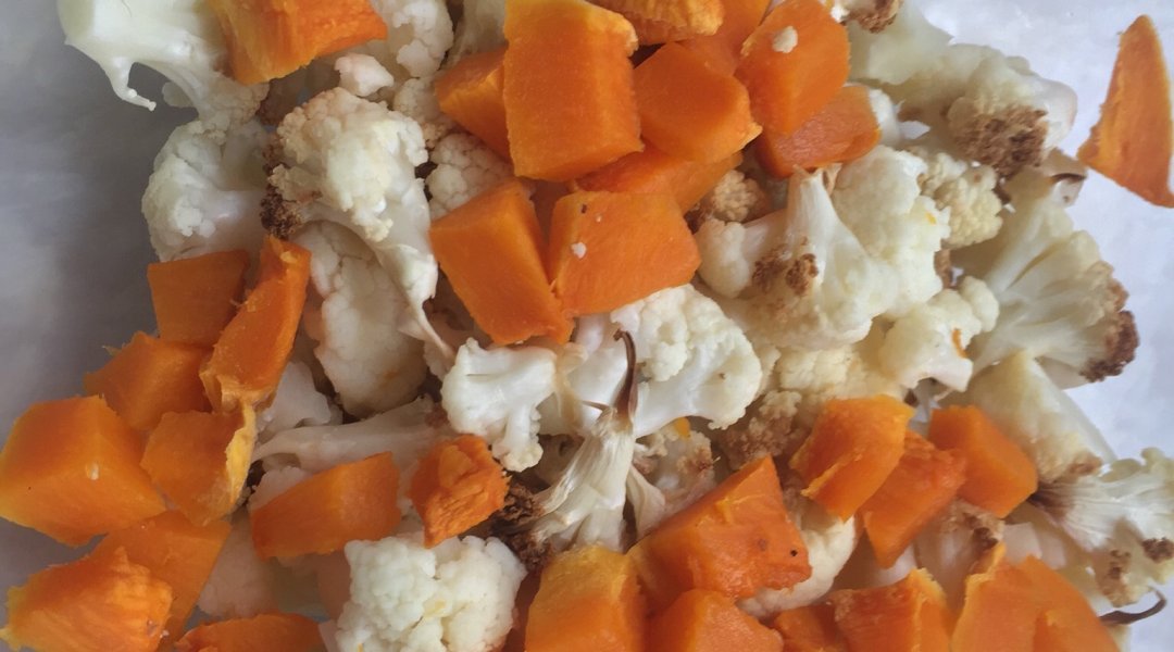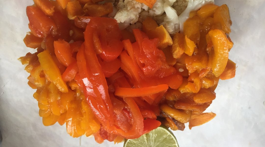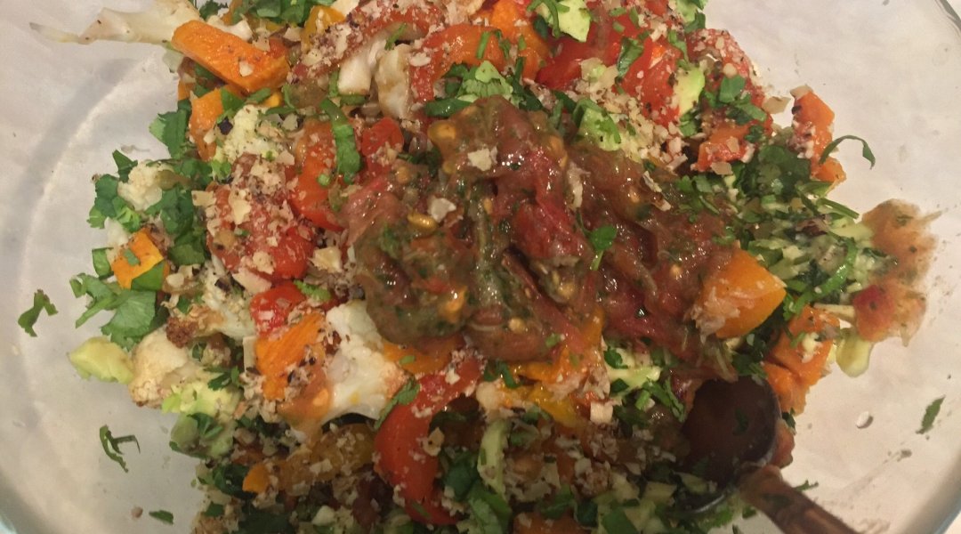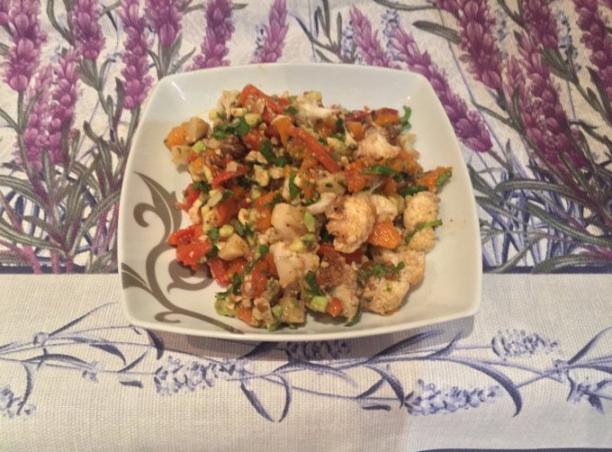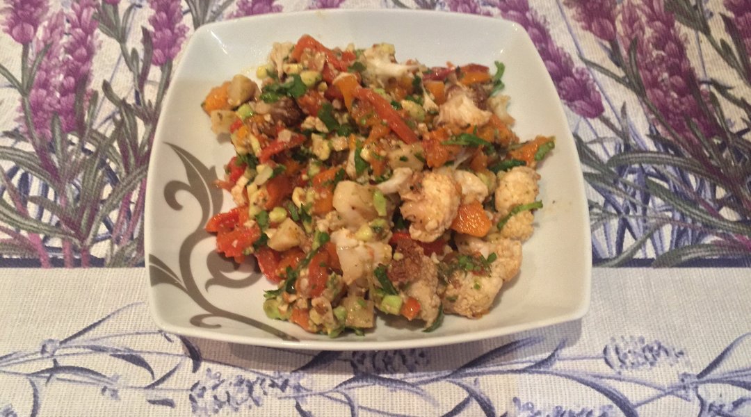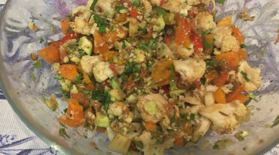 | Салат из цветной капусты и печеного перца с грецким орехом |