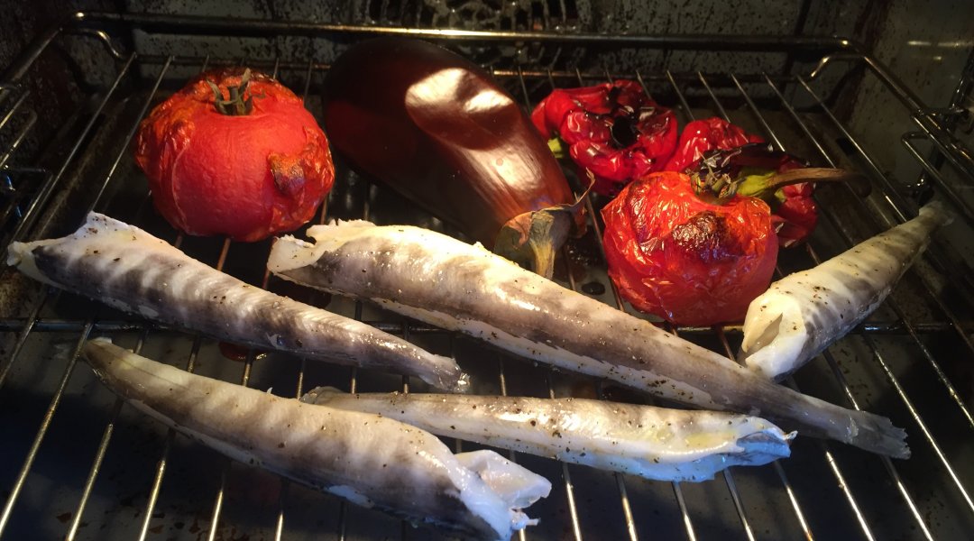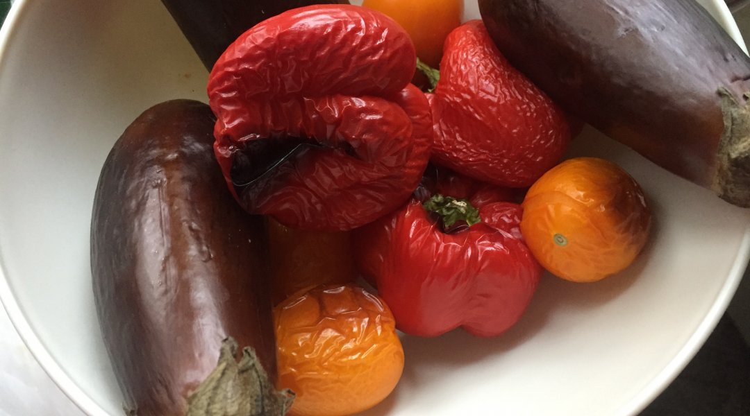 Положить овощи в духовку на решетку и запечь при температуре 200 градусов.