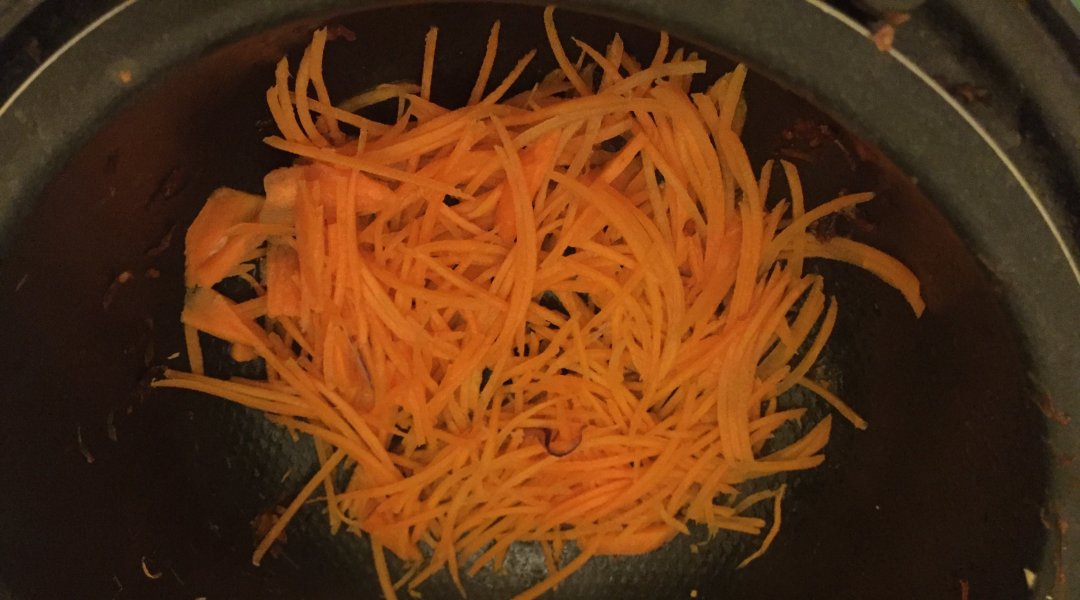 очистить, натереть соломкой, припустить в чаше мультиварки.