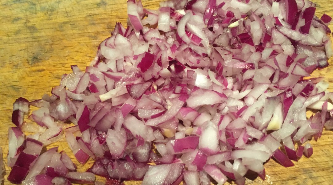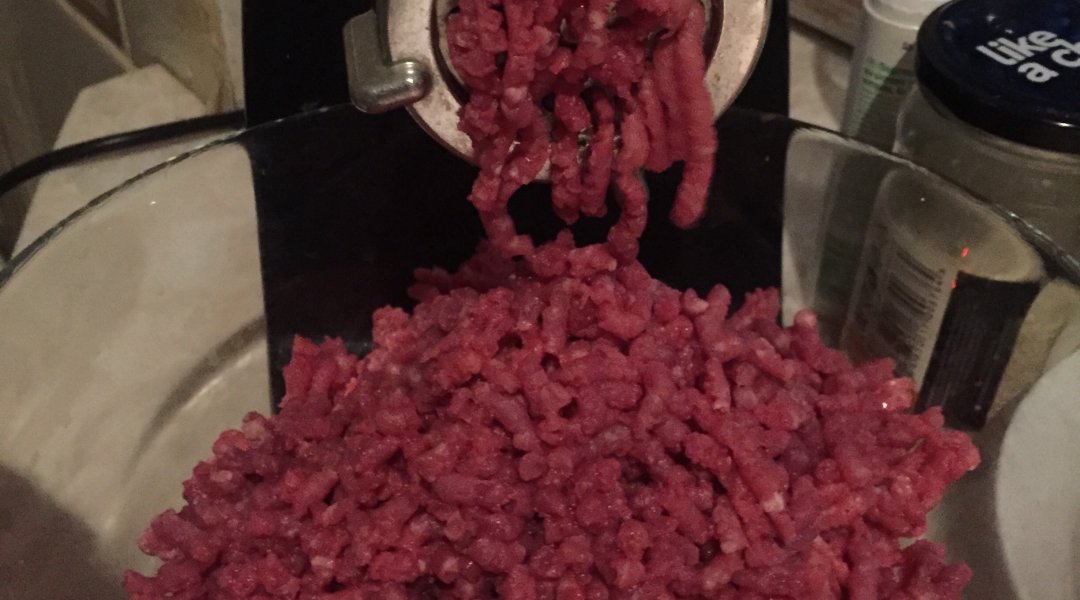 Провернуть мясо через мясорубку. Добавить небольшую луковицу
