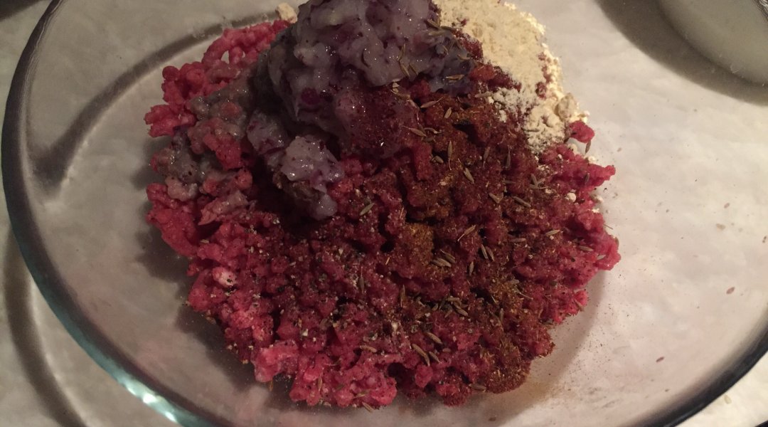 Прибавить к фаршу сумах, черный молотый перец, приправы для мяса,