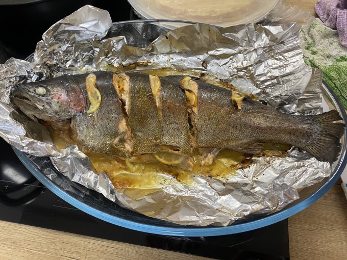 | Форель радужная, разведенная на ферме, приготовленная на жару |