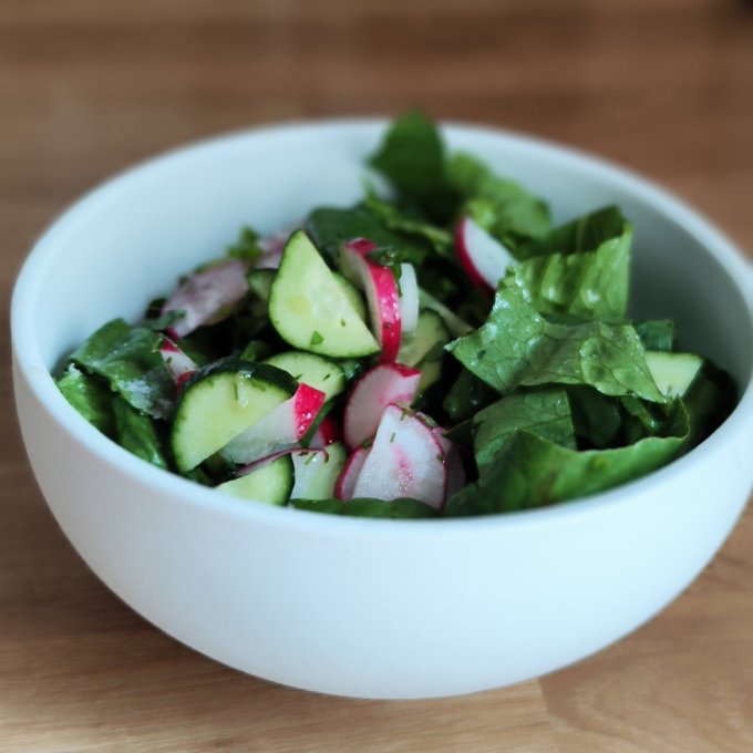 | Салат листовой с огурцом, редисом и оливковым маслом |