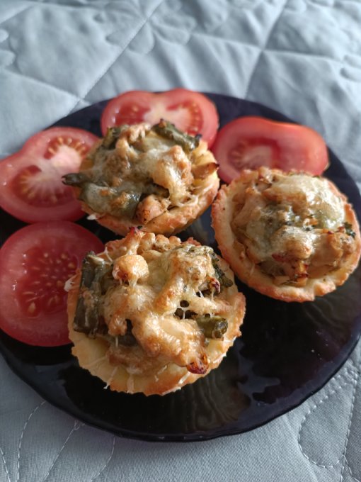 Тарталетки из творожного теста с овощами и грудкой🤤🤤🤤