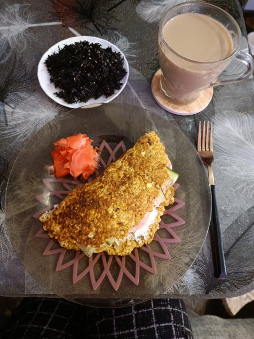 Кто про что, а я потрескать. На утро овсяноблин с говяжьей ветчиной, огурчик, имбиря захотелось и салат хиджики🥰 всем приятного аппетита. А на ужин будут роллы😁 накручу если лень не одолеет.