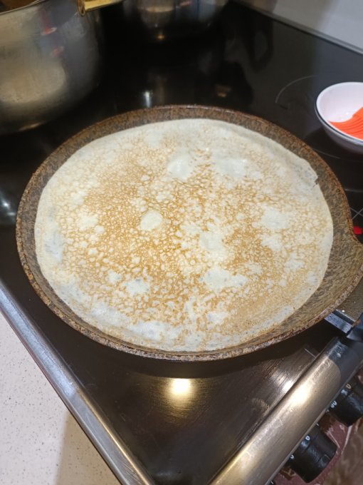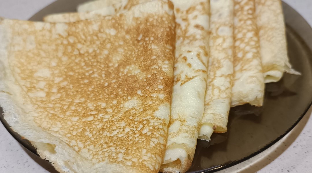 Из данных ингредиентов получается пять с половинкой тоненьких блинчиков.