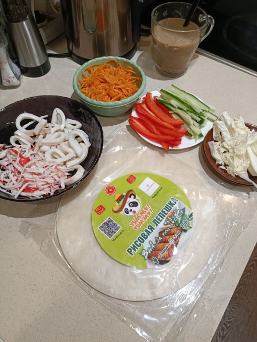 плов🤤🤤🤤а себе спринг роллы с кальмаром, палками и овощами.