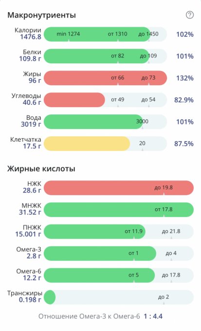 | Итого за день | 3708 | 1476 | 109 | 96 | 40 |