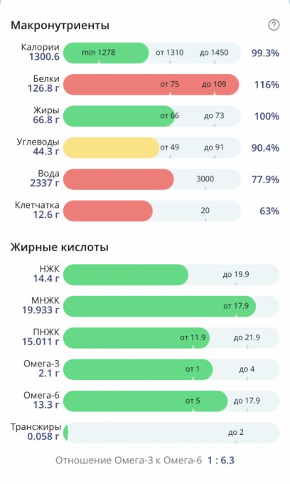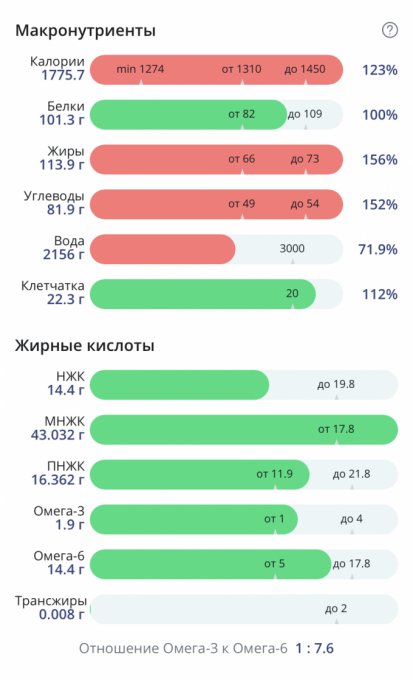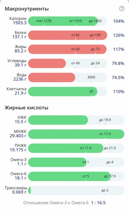 | Итого за день | 2792 | 1300 | 126 | 66 | 44 |